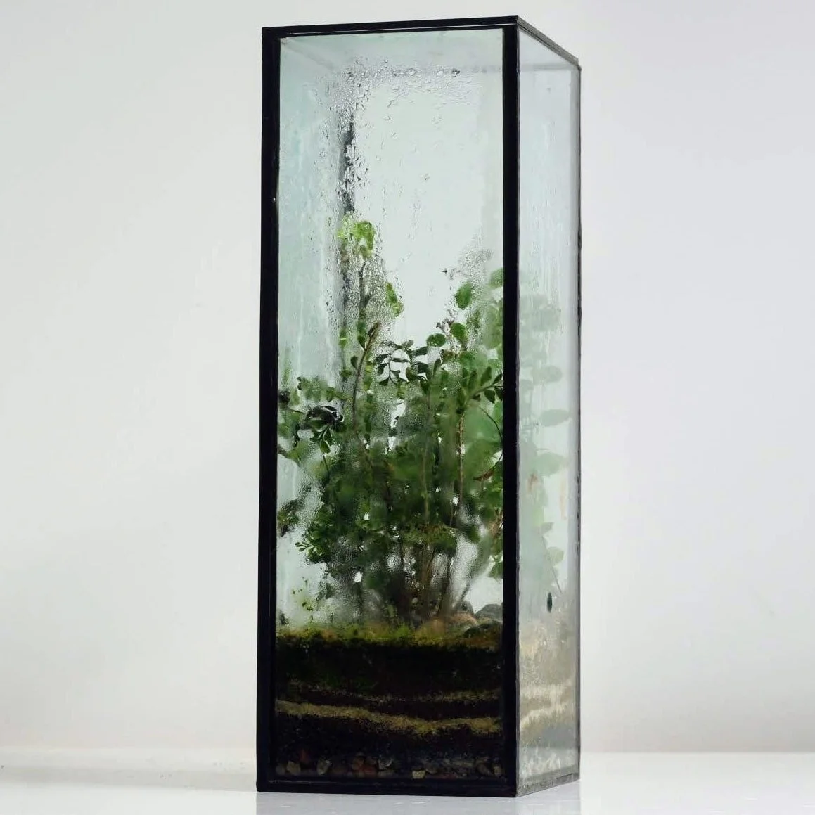 I experimented with plants in jars, bottles and any other containers I could find until I decided to create a vessel that allowed me to properly interact with the plants inside but also showcase them in a modern way, combining bespoke minimalist glass design with wild, living tropical plants.