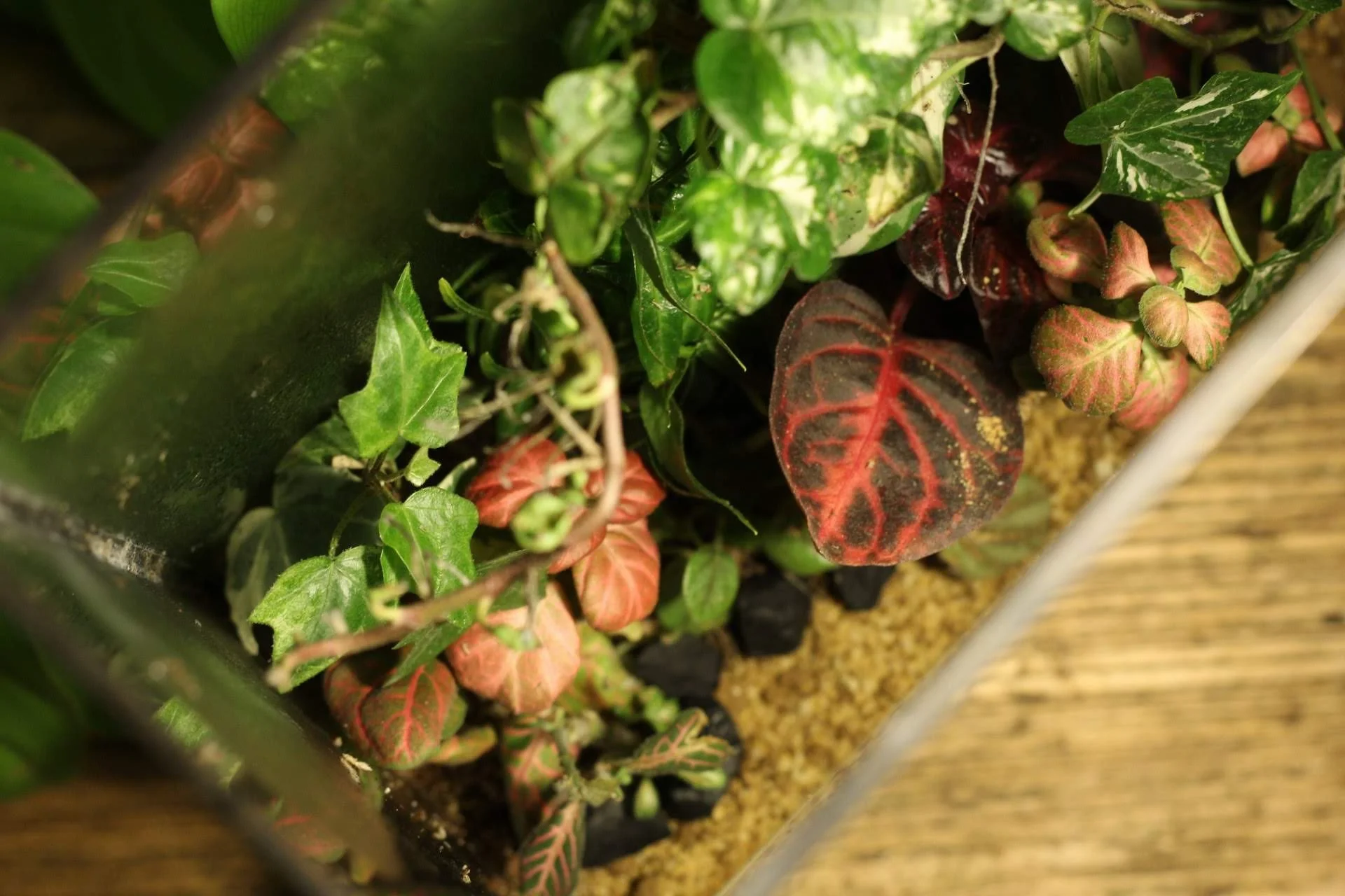 The best plants for a planted window are those that grow in the tropics and that do not grow too large. Some of the best species to use are fittonias, hypoestes, ferns, pileas, peperomias, ficus and mosses.